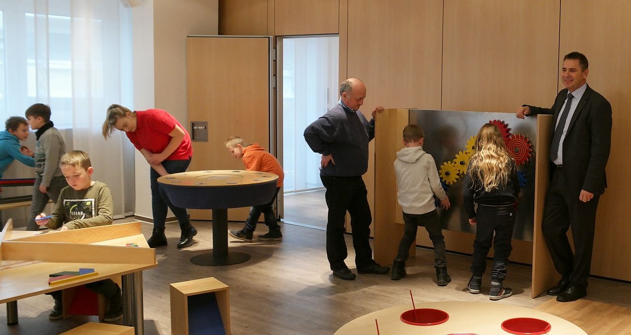 Auch Sparkassen-Chef Wolfgang Asche ist immer wieder überrascht, mit welcher Freude und Neugierde die Jüngsten die Aufgaben des Mini-Mathematikums angehen.