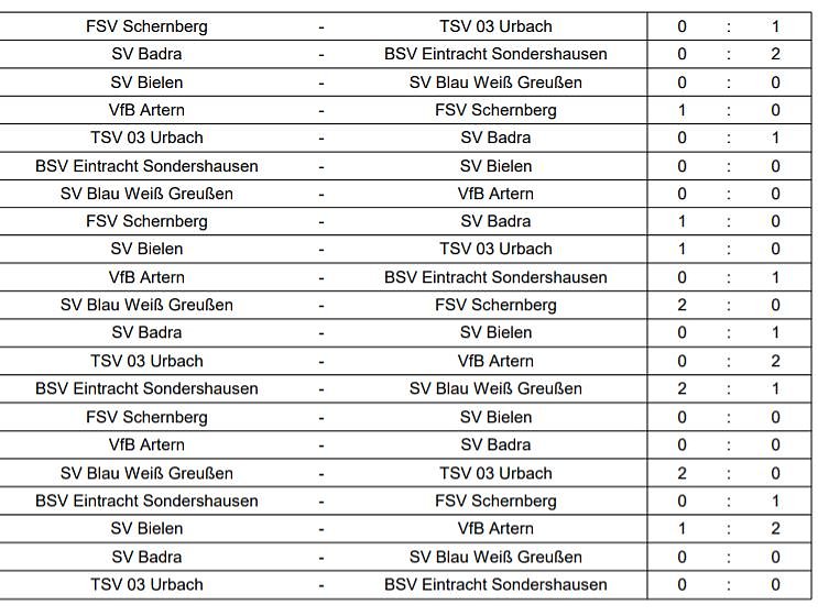 4. SV Bielen Tore 3 : 2 Punkte 9