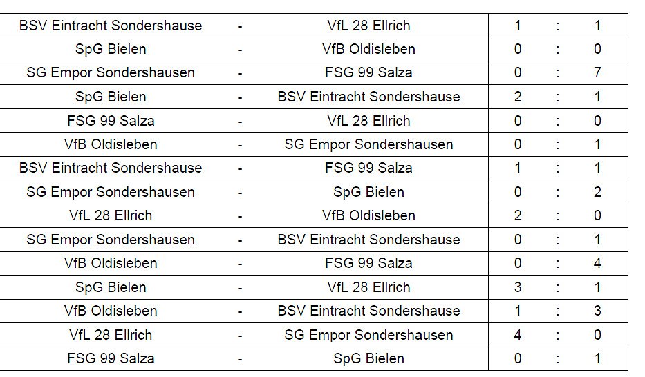 1. SpG Bielen Tore 8 : 2 Punkte 13
