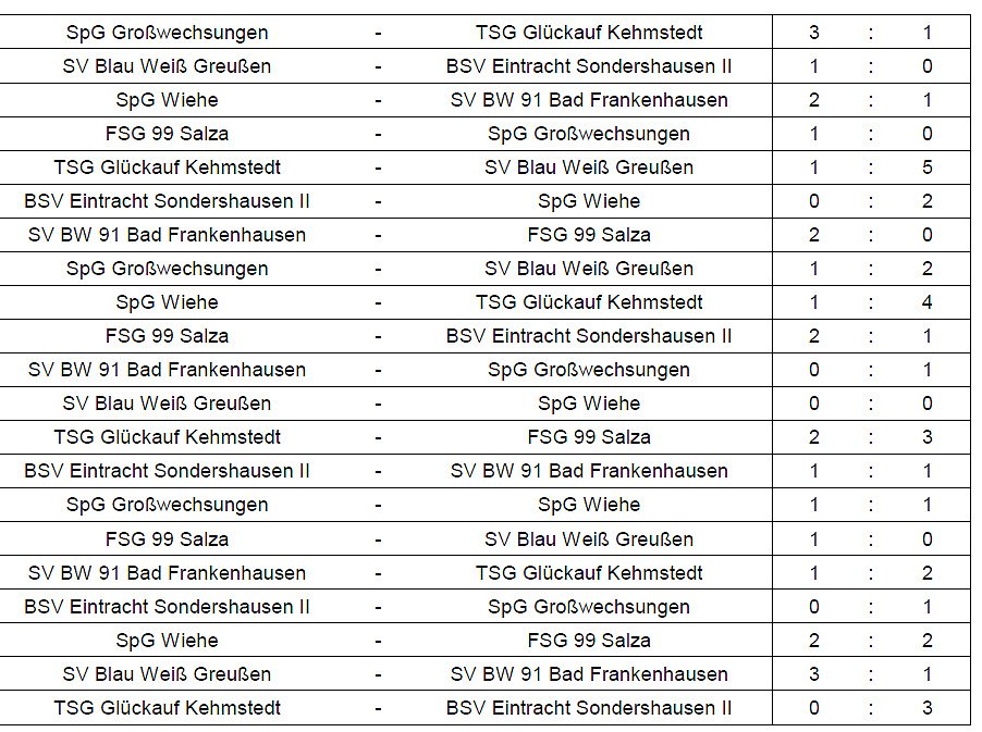 3. SpG Großwechsungen Tore 7 : 5 Punkte 10