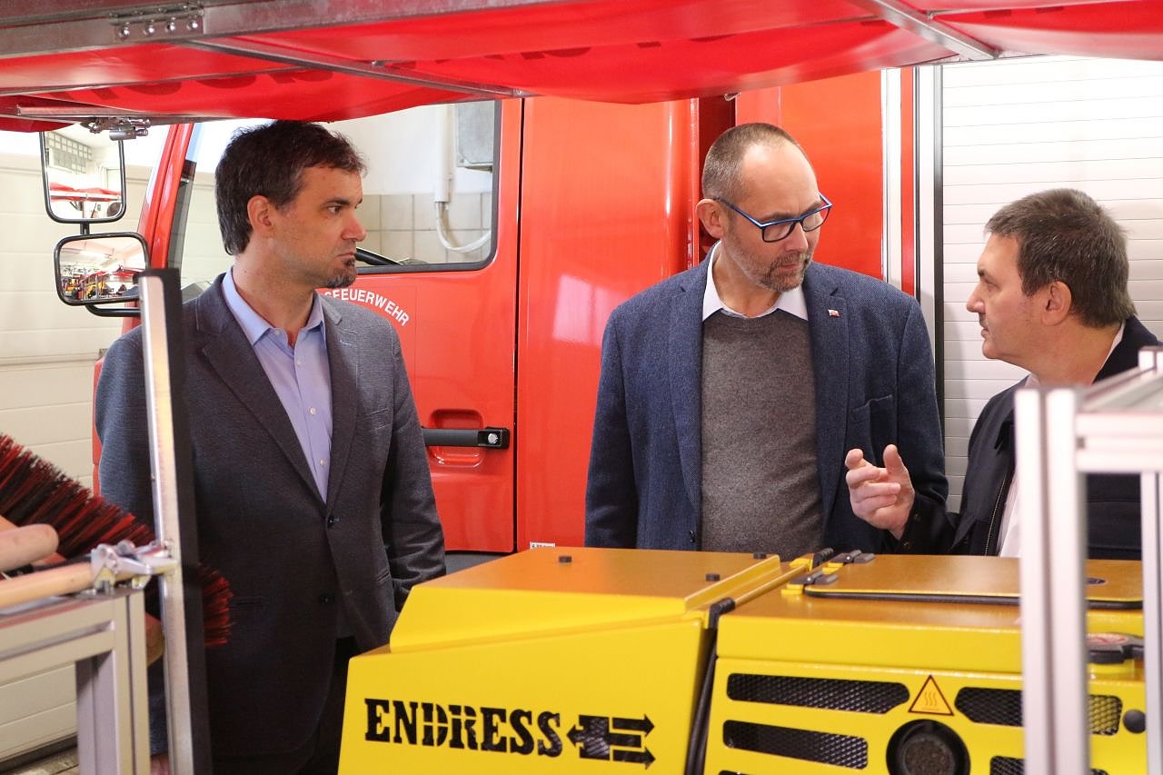 v.l.: Oberbügermeister Kai Buchmann, Staatssekretär Olaf Möller und Feuerwehrchef Gerd Jung (Foto: Angelo Glashagel)
