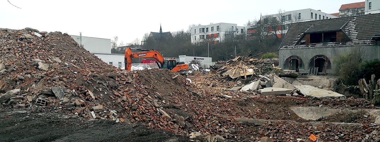 Roland Weber, der Geschäftsführer von Obermann Nutzfahrzeuge in Nordhausen, also quasi der Nachbar, kennt die Antwort, denn das Unternehmen hat das benachbarte Area des ehemaligen Zoohauses gekauft und will expandieren. "Leider musste der Brecher der von uns beauftragten Abrissfirma an einen anderen Standort wechseln, doch in einigen Tagen soll es weitergehen."