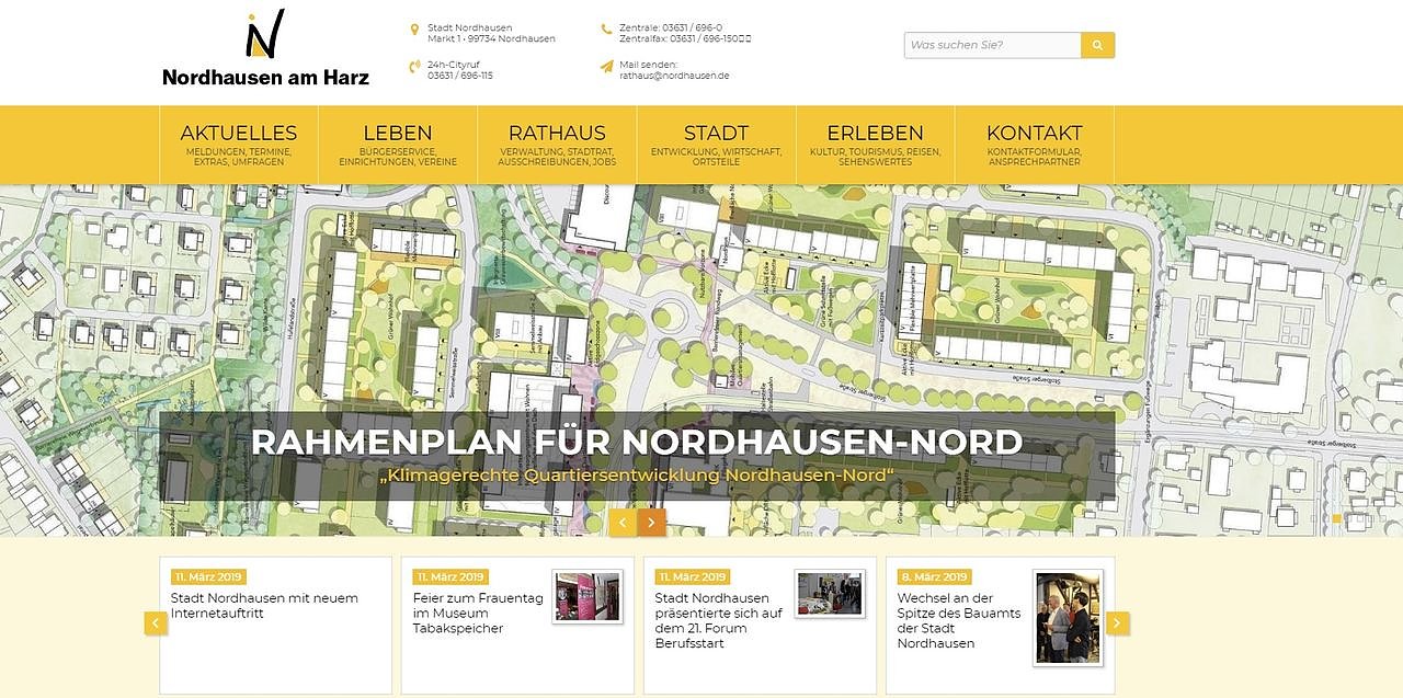 Seit Freitag vergangener Woche ist der überarbeitete Internetauftritt der Stadt Nordhausen online. Mit dem Relaunch der städtischen Internetseite erfolgte gemeinsam mit dem Partner wirsinds aus Nordhausen im ersten Schritt ein grafisches und technisches Lifting der Website...