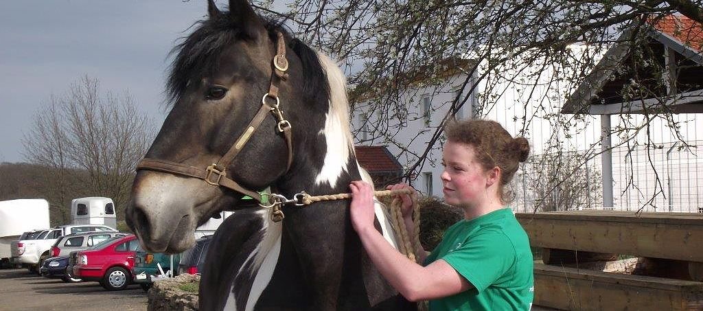 Die Stunden mit dem Kaltblut-Hengst sind für die angehende Physiotherapeutin immer was Besonderes. Sie reitet mit ihm aus oder unternimmt Kutschfahrten. Angetan habe es ihr der Pferdesport. Sie beteilige sich an Dressur- und Springreiten. Auch am kommenden Sonntag werde sie auf dem Farmgelände zwischen Herreden und Hochstedt sein. Erstmals in Thüringen erfolge hier ein Indoor-Gelände-Springen. Das sei ein spezielles Turnier für Vielseitigkeitsreiter in einer Halle, ausgestattet mit festen Geländehindernissen.