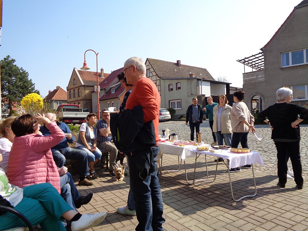 Zur feierlichen Aufstellung galt es dann für alle Gäste sich durch eine reichlich gedeckte Kuchentafel durchzuessen. Für die Kleinsten hat der Osterhase, der auch schon dieses Riesenei bewundert hat, ein paar süße Körbchen stehen gelassen, damit die Vorfreude in den Herzen der Kinder richtig befeuert wird.
