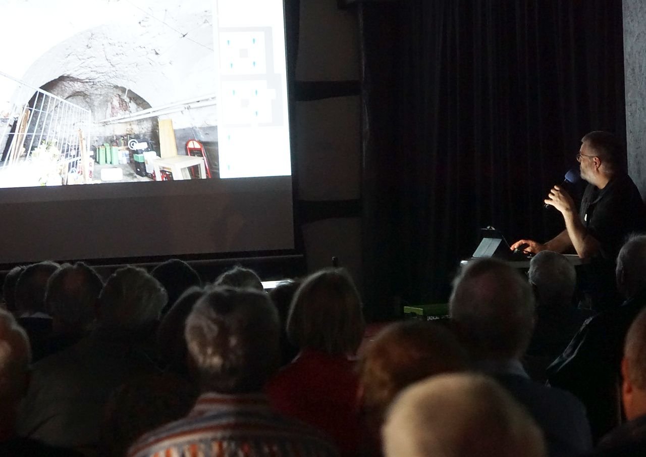 Mit Engagement und Begeisterung sprach Michael Garke über seine anfängliche Idee, die verborgene Unterwelt der Stadt fotografisch zu erkunden und ihre Geschichte festzuhalten. Allein bei den alten Kellergewölben interessierte mich zunächst vor allem, wie tief die darunterliegenden Keller liegen, das hat mich an der Geschichte besonders gereizt, leitete der Referent sein Thema ein.