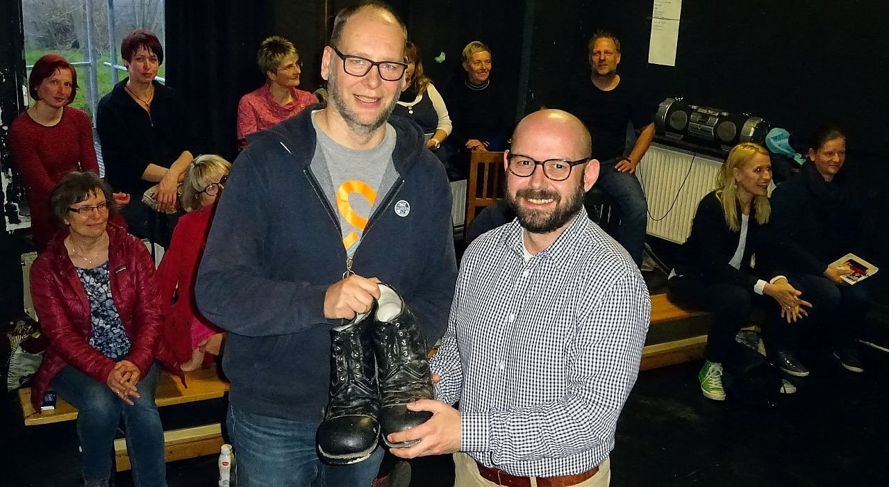 Der 38jährige Nordhäuser übernimmt damit den Vorsitz das Trägervereins von Zappelini - Der Junge Zirkus. Zur Amtsübergabe überreichte Tom Landsiedel die Schuhe von Zirkusdirektor Carlo an Michael Mohr.