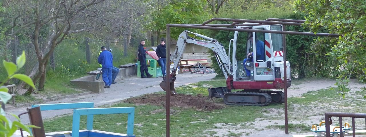 Wer heute vom Lohmarkt in Richtung Neuen Weg hinaus geht, der wird sich über eine dunkelgrüne Wand wundern. Das erste Mal findet eine Baumaßnahme auf dem Gelände einer Kita unter Ausschluss der Öffentlichkeit statt. Wir haben aber mal dahinter geblickt...