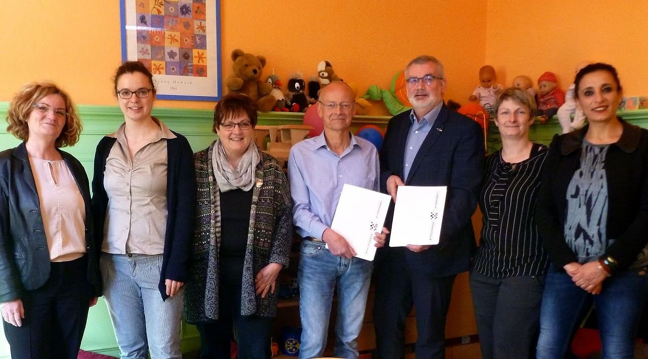 Jetzt konnte Stefan Nüßle, der 1. Beigeordnete des Landkreises, die vorläufigen Zuwendungsbescheide an das Familienzentrum übergeben, sowohl für die bestehenden Maßnahmen als auch für die neu entwickelten mobilen Beratungsangebote. Stefan Nüßle sagte anlässlich der Fördermittelübergabe: Wir können über das Landesprogramm neue wohnortnahe Angebote für Familien im Landkreis etablieren. Dabei setzen wir verstärkt auf Vernetzung und Kooperation mit den Akteuren vor Ort, schaffen dafür also keine neuen Strukturen.
