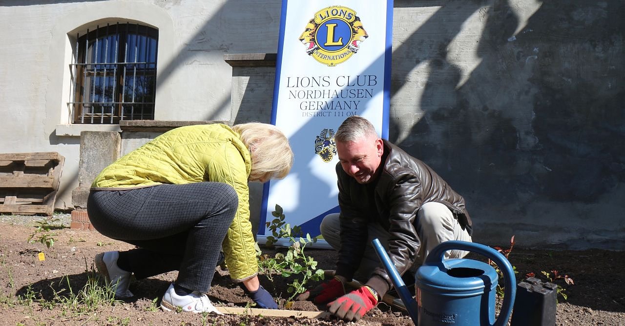 Die Blütenpracht im Park Hohenrode wurde jetzt um zehn Rosen erweitert. Der Nordhäuser Lions-Club spendete die Spezialzüchtungen an den Förderverein des Parks. Und neben flora hatten die Löwen auch pecunia mitgebracht...