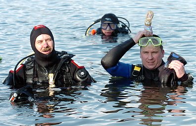Wasserrettung ist eigentlich eine ernste Sache, aber Spaß haben kann man dabei auch. Das bewiesen wieder einmal die Taucher der DRK Wasserwacht bei ihrem jährlichen Ostertauchen im Kiesschacht am Uthleber Weg. Rund 20 Tauchbegeisterte stürzten sich ins kalte Wasser, um nach Hasen und Eiern zu suchen. Wie der Osterhase es geschafft hat, dort was zu verstecken wird sein Geheimnis bleiben.