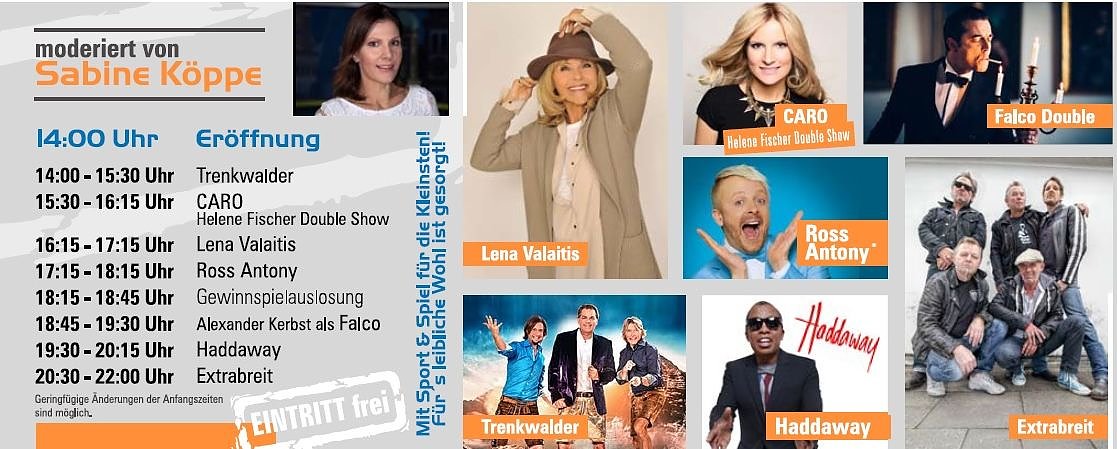 Die Party wird am 18. August, um 14 Uhr eröffnet. Die ersten auf der Bühne sind "Trenkwalder", die 30 Jahre "Junge Volksmusik" feiern, danach haben Frauen das musikalische "Sagen.