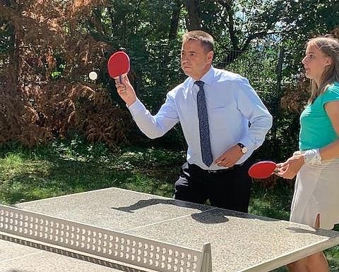 In ihrer kleinen Begrüßungsansprache würdigte sie dieses Miteinander von Eltern, Schülern und Lehrern und fand viel lobende Worte. Ihr besonderer Dank ging an die Nordhäuser Kreissparkasse und ihren Vorstand Wolfgang Asche für eine neue Tischtennisplatte, die das Geldhaus der Schule zum Geschenkt machte. Wolfgang Asche nutzte die Gelegenheit gleich aus, das Spielgerät höchstselbst zu testen und stellte sich den Schülern in einem Turnier. Der erste gelungene Schmetterball ging dann auch prompt auf sein Konto.