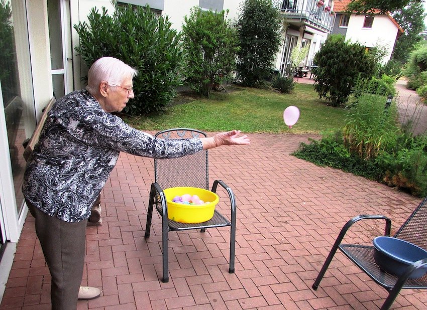 Beim Tauziehen und Wasserbombenzielwerfen wurden die Lachmuskeln mächtig trainiert. Die wassergefüllten Ballons wollten nicht platzen und hüpften weiter durch die Blumenrabatte. Schließlich wurde ein uriger Baum als Ziel auserkoren. Fast jeder Wurf ein Treffer. Unsere Senioren/innen jubelten überglücklich. Für einige Stunden waren alle Sorgen ausgeblendet. Was die Oma im Hühnerstall so treibt wurde am letzten Projekttag textsicher besungen. Wer kennt solche Lieder nicht………….!