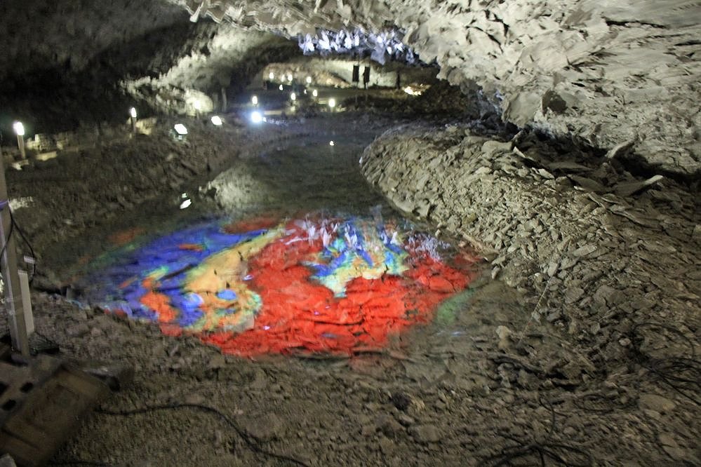 Die komplette Performance der Biennale kann man nicht während der üblichen Öffnungszeiten erleben. Die Biennale ist in der Zeit von 17:30 Uhr bis 20:00 Uhr erlebbar. Es wird auch keine Gruppenführungen geben. Gerade durch die Erlebbarkeit mit Videos muss man sich so eine Ausstellung selbst auf sich einwirken lassen. Das Ambiente der Höhle mit seinen Wasserflächen lässt viele Darstellungen in interessanten Blickwinkeln erscheinen.