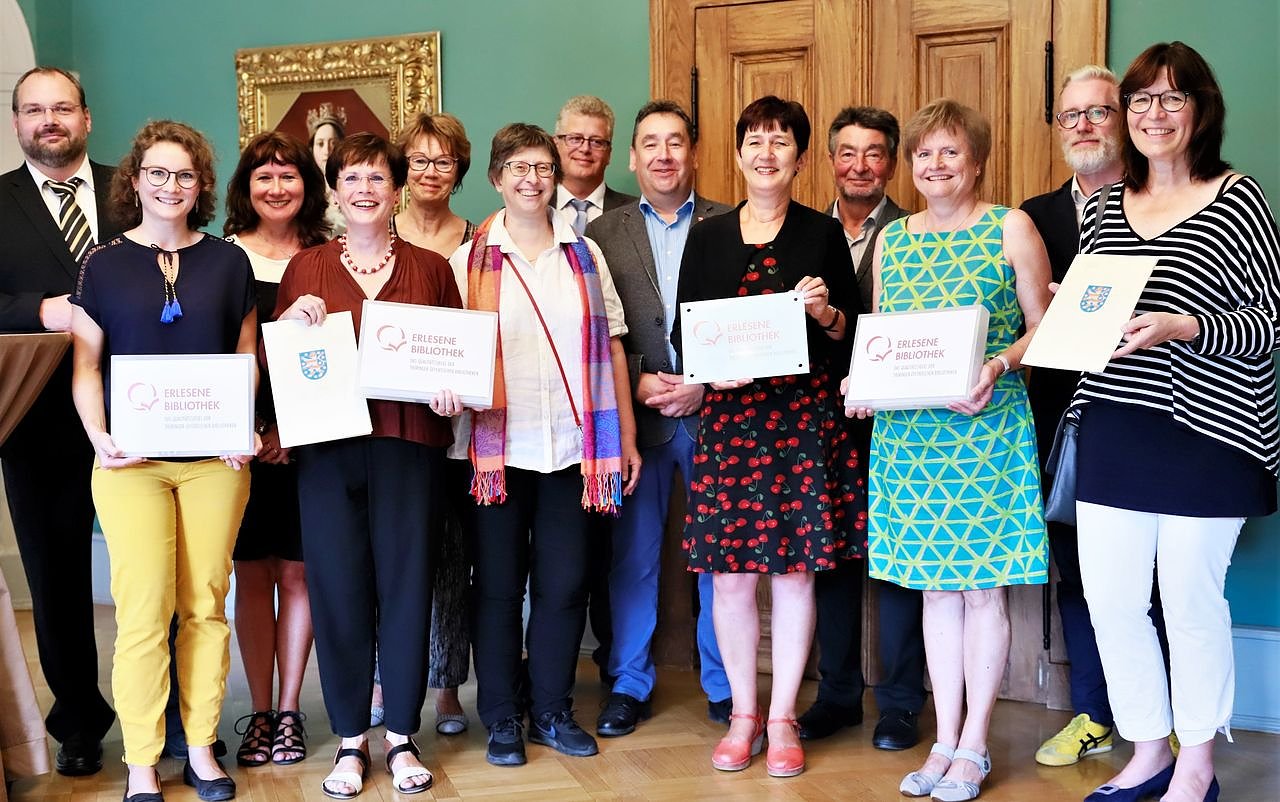 Mit dem heutigen Tag gibt es in Thüringen vier Erlesene Bibliotheken. Nach der Stadtbibliothek Eisenach (November 2017) haben heute die Stadtbibliotheken Schleiz, Nordhausen und Rudolstadt das Qualitätssiegel erhalten. Kulturminister Prof. Dr. Benjamin-Immanuel Hoff hat am Nachmittag in der Thüringer Staatskanzlei die Urkunden an die drei Einrichtungen überreicht...