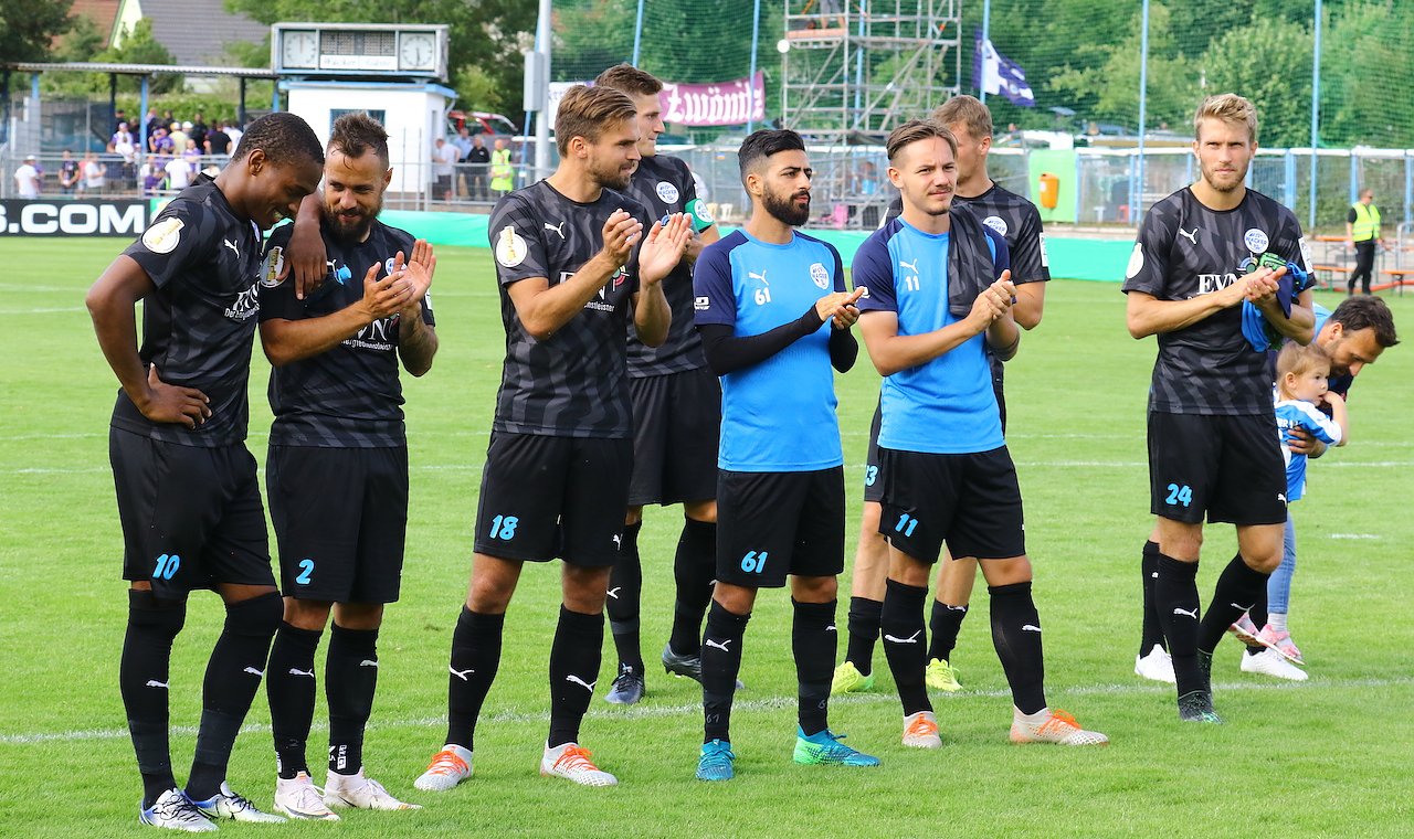 Gedankt hat es die Mannschaft ihren Fans und dem tollen Nordhäuser Publikum mit der 1:0 Führung gegen den Favoriten aus der zweiten Liga. Obwohl noch vor dem Halbzeitpfiff der Ausgleich fiel, sah man ein Spiel auf Augenhöhe. Was passiert wäre, wenn Tobias Becker nicht vom Platz hätte gehen müssen, ist Spekulation. Fakt ist, dass Aue in der zweiten Halbzeit noch dreimal traf und verdient als Sieger in die nächste Runde einzog.