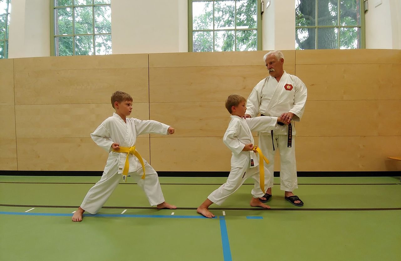 Während für die meisten Karateka das Training nun wieder einen wertvollen Kontrast zum Schulalltag bietet, entwickeln einige überdies den Ehrgeiz, ihr Können auch überregional mit Anderen zu messen. So wie Conner René Dittmar und Ben Schuster. Sie nehmen parallel noch an einem gesonderten Kadertraining teil.
