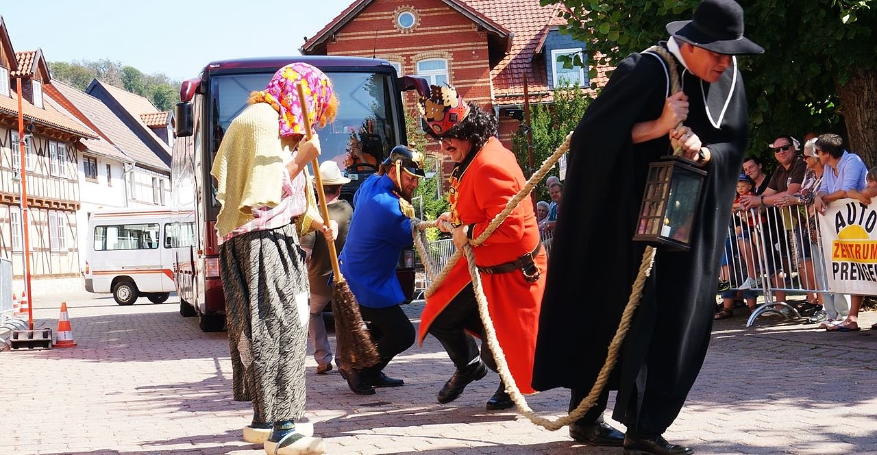 Der Reisebus ist rund 14,2 Tonnen schwer, 12,50 Meter lang und rund 3,20 Meter hoch, berichtet Busfahrer Jens Varges von den Nordhäuser Verkehrsbetrieben, der das Fahrzeug im Wettbewerb lenkte. Eröffnet wurde die 2. Thüringer Buspullingmeisterschaft von der Neustädter Rolandgruppe, sehr zur Freude der vielen Zuschauer. Mit dabei waren auch die Echten Harztormänner, das Team KDS, die Hasselfelder Kaltblüter, das Team Hotel Ratskeller, die Trinkerbells, ein Team der Freiwilligen Feuerwehr Neustadt-Osterode, die auch den Wettbewerb absicherten sowie die Rainbowwarriors und das Zuschauerteam Tetris. Aufgrund von Terminschwierigkeiten konnten die Vorjahressieger den Wanderpokal nicht verteidigen. Kräftig packten die Hasselfelder Kaltblüter zu und schafften es beim Start das dicke Zugseil zu zerreißen. Nach einem schnellen Ersatz konnte das Buspulling, bei dem es drei Läufe gibt, weiter gehen. Gewonnen haben in diesem Jahr die Hasselfelder Kaltblüter, den zweiten Platz erreichte das KDS Team, den dritten Platz das Team Tetris.