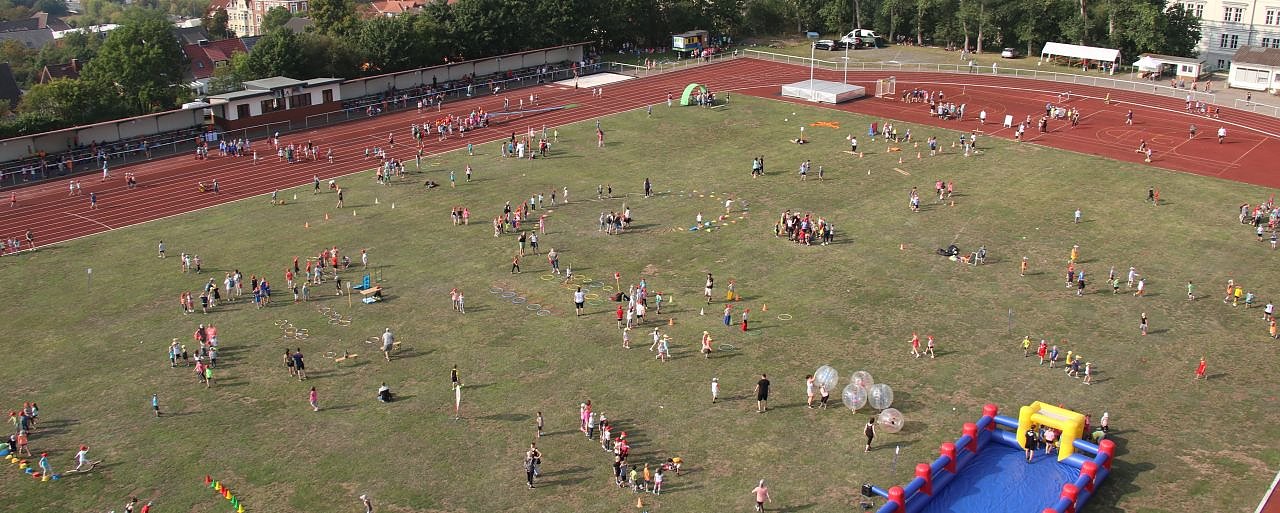 Polizei und Feuerwehr waren am Vormittag ebenso vor Ort wie das Rote Kreuz, die Johanniter und diverse Vereine, die an 30 Stationen für Bewegung sorgten, das Berufsschulzentrum und die pro vita Akademie schickten wieder ihre Schüler, um die Angebote zu betreuen. Hinter den Kulissen halfen auch der Landkreis, die Stadt- und die Schulverwaltung bei der Organisation, so stellte das Landratsamt etwa 18 Busse zur Verfügung, um die Schülerinnen und Schüler zum Sportplatz und zurück zu bringen.