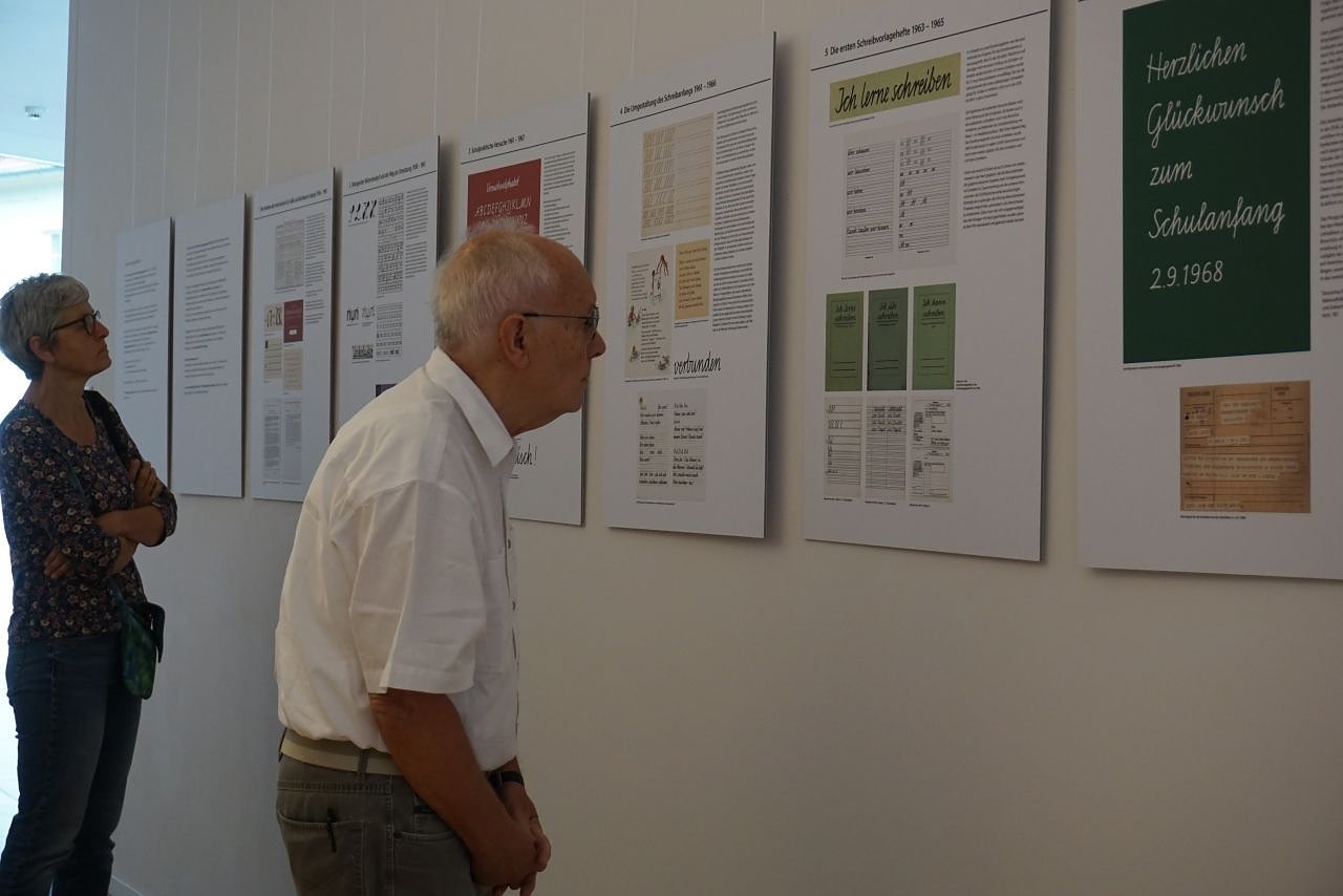 Im Ranzen der DDR-Grundschüler fehlte es nie: das grau-grüne Schreibvorlagenheft. Die älteren Besucher der Ausstellung 50 Jahre Schulausgangsschrift" erkannten diese Hefte in den Vitrinen sofort. Denn in den linierten Heften lernten die DDR-Kinder ab 1968 die Buchstaben zu schreiben.