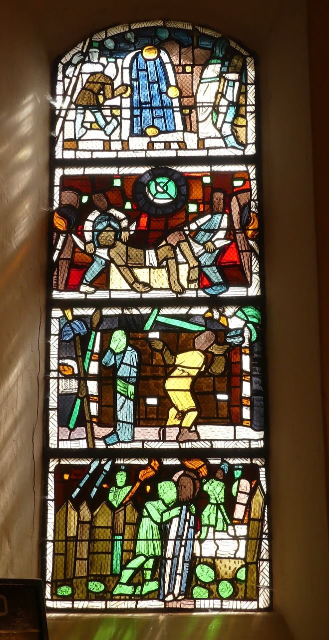 Eines der vier Crodel-Fenster - das versiegelte Grab Jesu ist ganz oben zu sehen