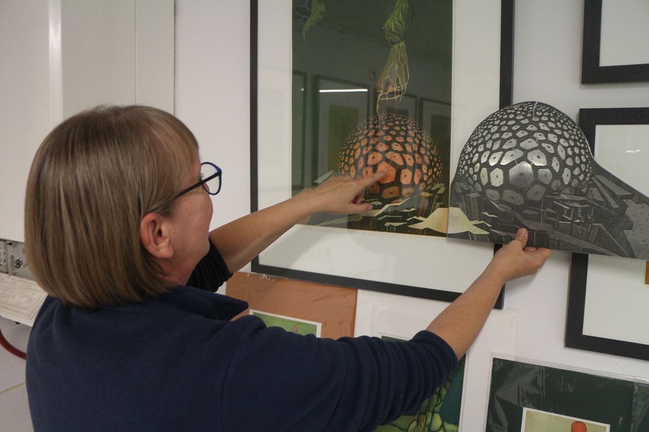 Ute Zyrus-Gonska macht das seit über 30 Jahren. Angefangen hat die Liebe zum Kunstschaffen schon "an der Penne" unter der Anleitung von Günther Groh, seines Zeichens einer der wenigen einflussreichen Nordhäuser Künstler im ausgehenden 20. Jahrhunderts. Von der Schule ging es weiter an die Universität, Lehramtsstudium in Mathematik und Kunst. Im Lehramt ist sie seitdem geblieben und bringt den Schülerinnen und Schülern der Lessing-Schule die Grundlagen nahe. Ihre eigene Kunst ist seitdem freischaffend geblieben, getrieben von der Freude am Experiment, nicht dem Broterwerb.