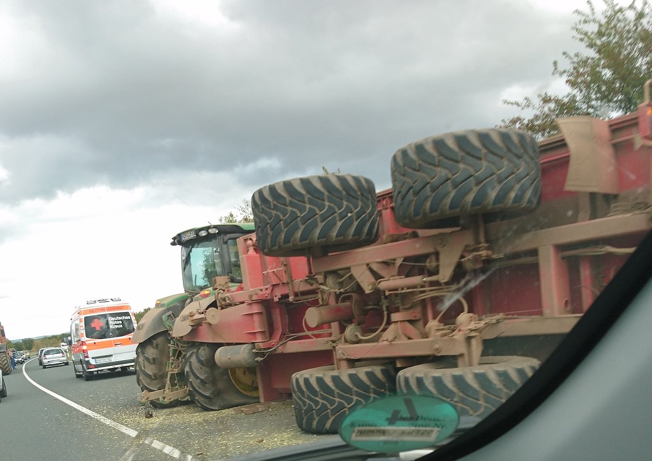 Gegen 14:00 Uhr wurde die Freiwillige Feuerwehr Wipperdorf zu einem auf der L3080, mit Maishäcksel verunglücktem Traktorgespann gerufen.