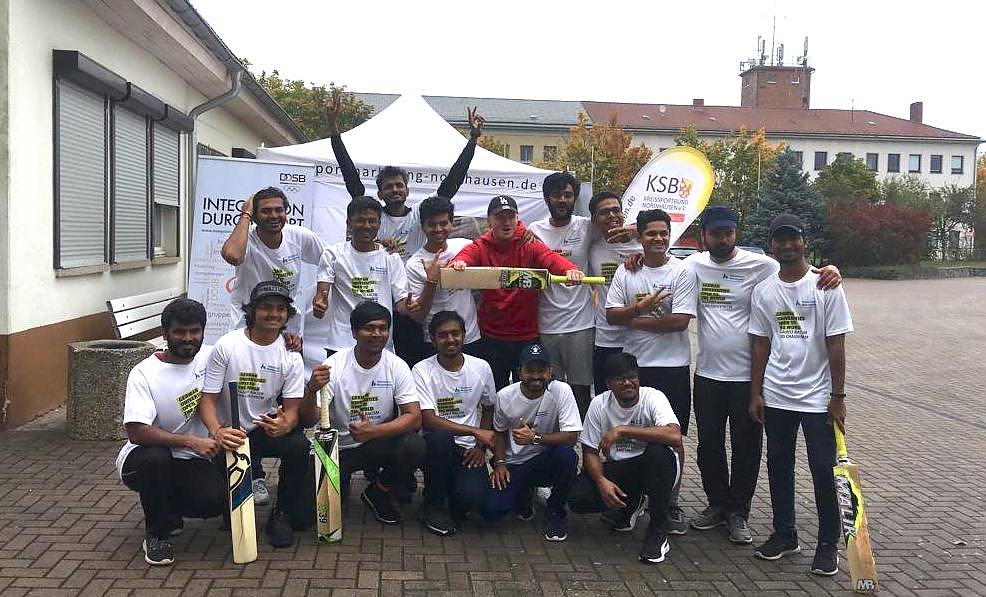 Der Start um 13 Uhr verlief bei strömendem Regen, was sicherlich englischen Cricketiers nichts ausgemacht hätte. Doch auch die Jungs aus Afghanistan, Indien und Pakistan verzogen keine Miene und begannen auf der professionellen Pitch der TSG Krimderode mit den ersten Schlägen. Die Ausrüstung mit Schlägern, Helmen, Handschuhen und Protektoren war im vergangenen Jahr in einem Projekt aus dem Bundesprogramm Integration durch Sport vom Kreissportbund Nordhausen angeschafft worden. Dessen Integrationsbeauftragte Manuela Henning war mit einem Infostand über die mit Integration beschäftigen Sportvereinen des Kreises und ihren Möglichkeiten vor Ort präsent. Organisiert hatten das Turnier die TSG Krimderode in Kooperation mit der Nordhäuser Hochschule und dem KSB Nordhausen.