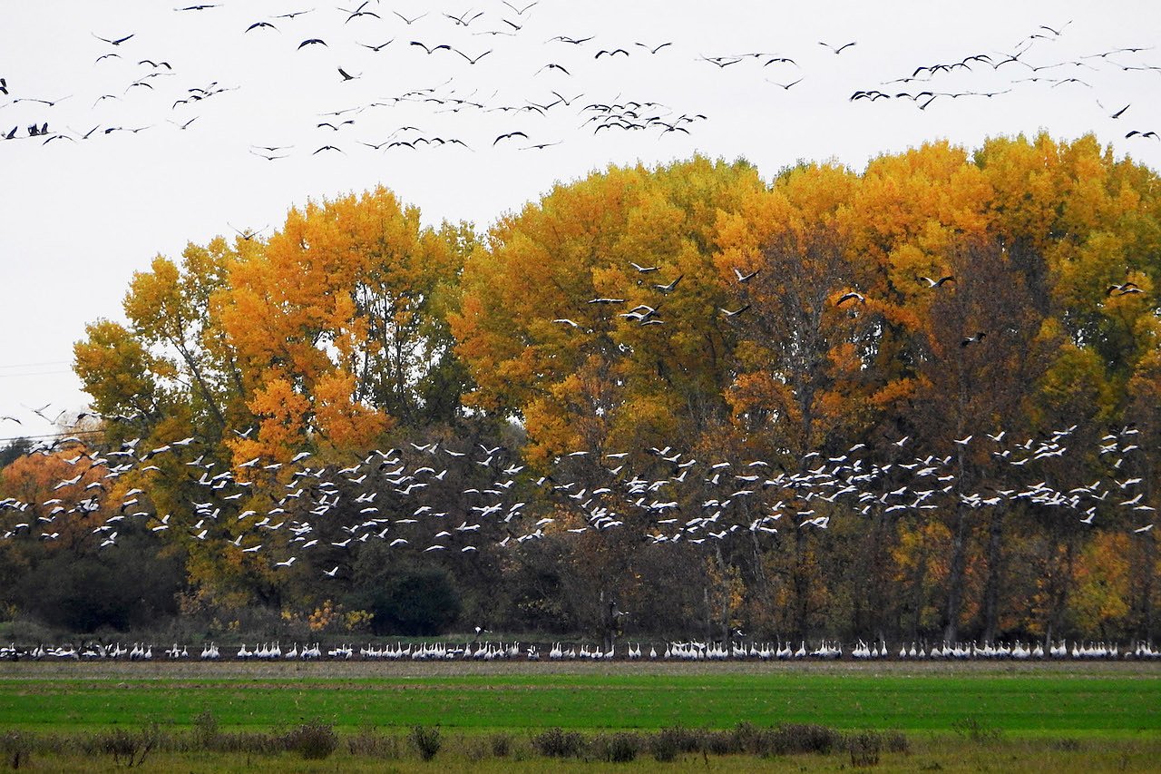 Die Grauen Kraniche brüten in Nordeuropa und ziehen zum Überwintern hauptsächlich nach Spanien.