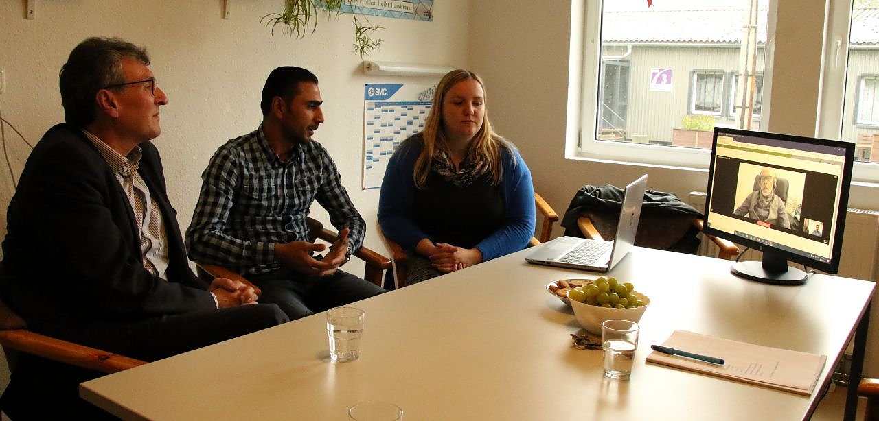 Im Idealfall kann man in solchen Fällen auf die Dienste eines ausgebildeteten Dolmetschers zurückgreifen, doch die sind in der Regel rar gesät, nicht eben günstig und schwer verfügbar, gerade im ländlichen Raum. In den Migrationsprojekten des Horizont-Vereins hat man diese Erfahrungen lange gemacht und sich mit Mitarbeitern aus dem eigenen Team oder mit ehrenamtlicher Unterstützung beholfen. Seit einem guten halben Jahr gibt der Freistaat den Sozialarbeitern eine technische Lösung des Problems an die Hand, die sich Dieter Lauinger (Bündnis '90/Die Grünen), Thüringens Minister für Migration, Justiz und Verbraucherschutz, heute vor Ort im Praxistest angesehen hat.