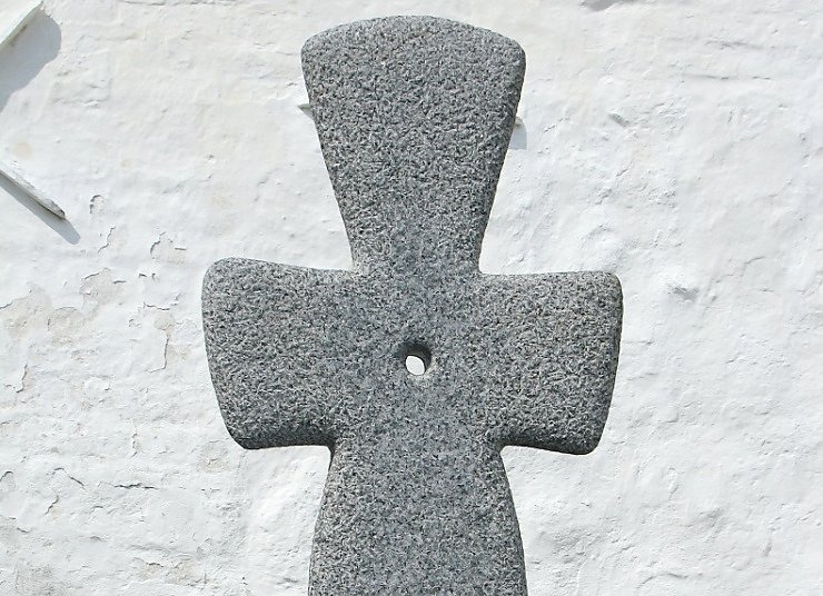 Aus der Ferne erinnert mich dieses Kreuz an eine Blume oder vielleicht noch eher an die Umrisse eines Menschen. Ich kann nicht anders, als dieses Kreuz zu betrachten und frage mich, welche Bedeutung das kleine Loch in der Mitte hat?