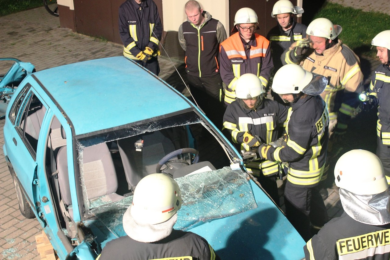 Die Einsatzabteilung der Sundhäuser Feuerwehr übte am vergangenen Wochenende die Rettung verletzter Personen aus einem PKW. Der stellvertretende Wehrführer Christian Rißmann leitete die Ausbildung.