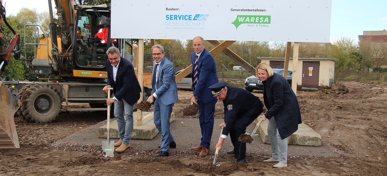 Es sollte mehr als nur ein symbolischer Spatenstich sein, den die vier Herrschaften unterstützt von einer Dame heute in der Nordhäuser Zorgestraße vollzogen. Innenminister Maier nannte es stolz den Sicherheitscampus.