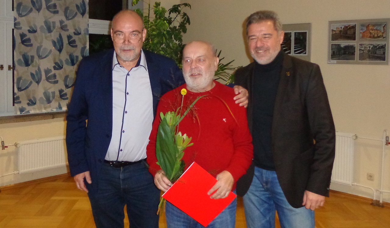 Und so hatte der Vorstandschef des SPD-Ortsvereins Nordhausen, Hans-Georg Müller, an diesem Abend noch vor der kritischen Aussprache eine angenehme Aufgabe zu erfüllen. Es galt ein langjähriges Mitglied der Partei zu ehren: Klaus-Dieter Reimers. Für 35jährige Mitgliedschaft in der SPD erhielt KD - wie er von vielen kurz und bündig genannt wird – eine Urkunde und einen Blumenstrauß, verbunden mit einem aufrichtigen Dank für sein großartiges Engagement.