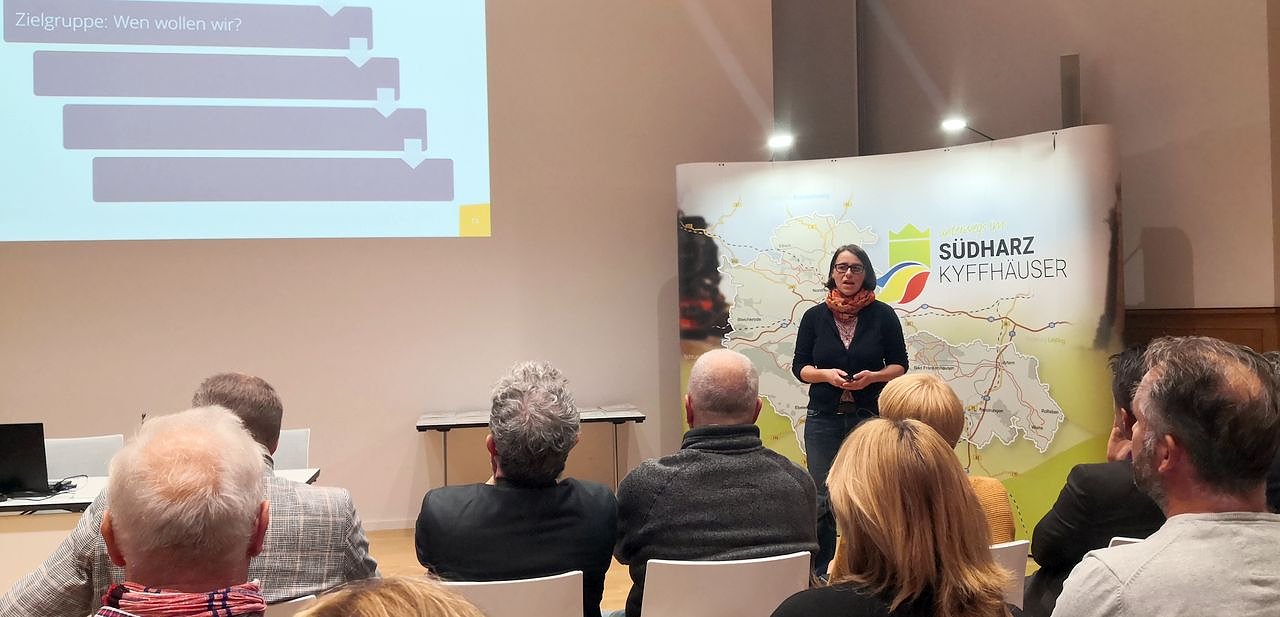 Kristine Honig von der Agentur "Tourismuszukunft" war es denn auch, die die erstellte und in mehrfachen Workshops erarbeitete und diskutierte Strategie vorstellte. Das erste Mal murrte es im Auditorium, als Frau Honig einige Destinationen und Sehenswürdigkeiten erwähnte und aus Nordhausen mal gerade der Korn dabei war. Vermutlich sehr zur Freude des Chefs der Echter Nordhäuser Traditionsbrennerei.