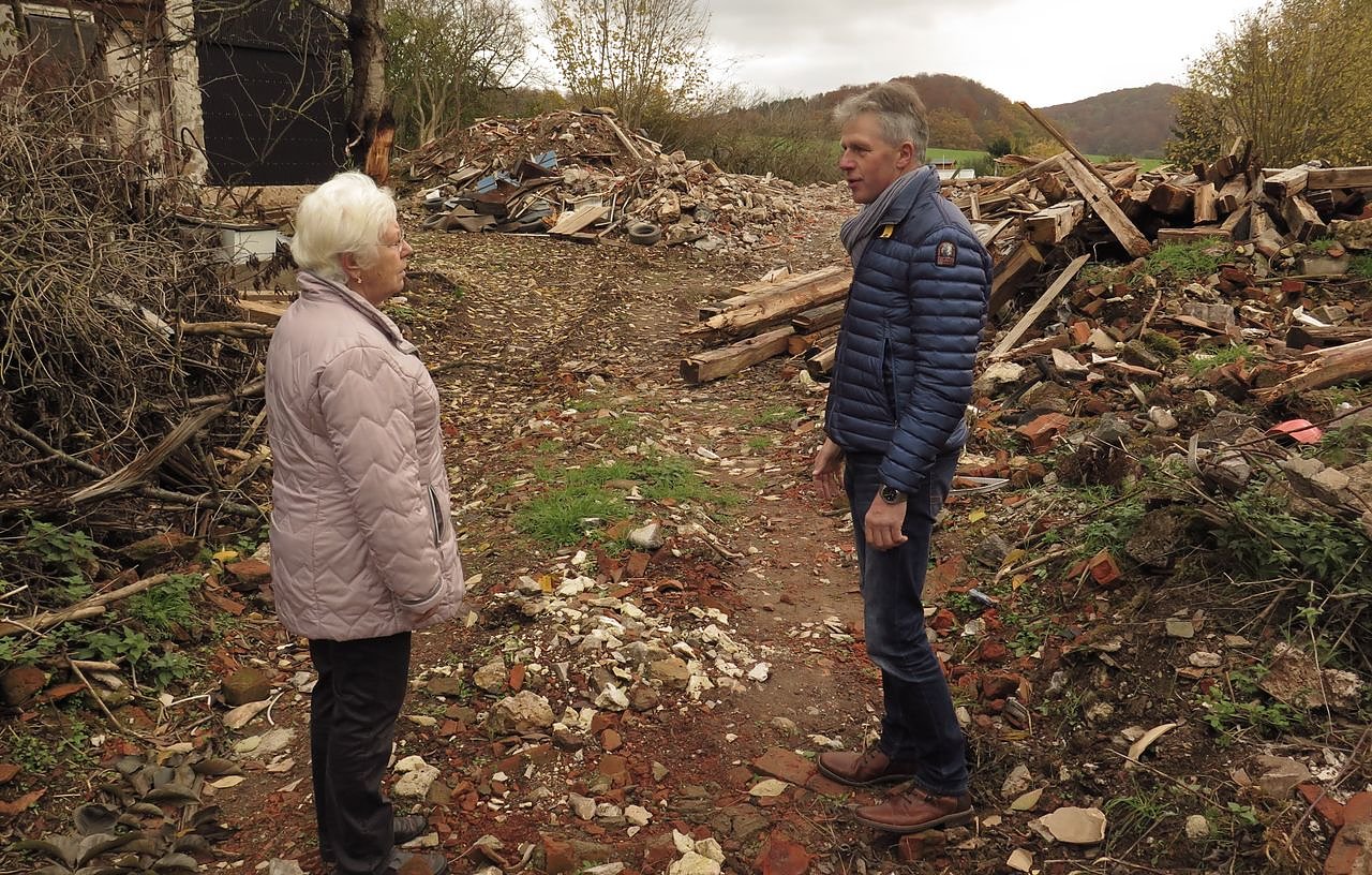 Ortsteilbürgermeisterin Gisela Roßmeier und Bürgermeister Andreas Gerbothe bei einem Vor-Ort-TerminPlatz wäre auf jeden Fall für vier richtig attraktive Grundstücke auf diesem Areal und wir könnten endlich die Anfragen von jungen Familien nach einem Bauplatz in Liebenrode positiv beantworten”, sagt die Ortsteilbürgermeisterin und verweist unter anderem auf den ersten Adventssamstag, wenn es in ihrem Ort den historischen Adventsmarkt geben wird. Nach dem aktuellen Stand der Dinge wird sich das Grundstück entlang der Steilgasse aber dann immer noch in diesem unfreundlichen Zustand präsentieren.