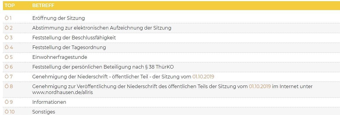 Screenshot Tagesordnung (Foto: Stadtverwaltung Nordhausen)