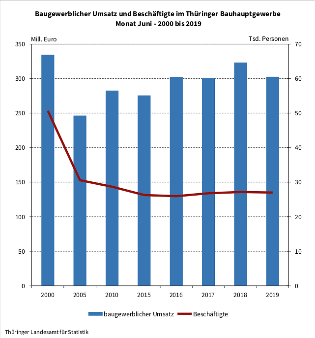 Neben Ergebnissen zur Struktur der Betriebe des Thüringer Bauhauptgewerbes werden durch das Thüringer Landesamt für Statistik jährlich auch Daten zur konjunkturellen Entwicklung für den Monat Juni erhoben... 2