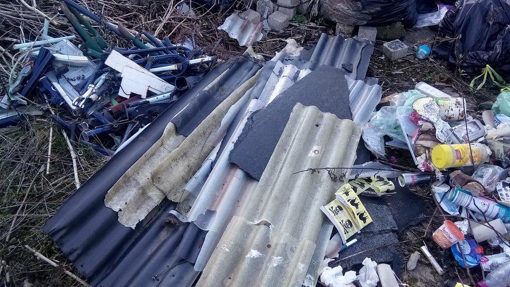 Vor drei Wochen landeten dort nur wenige Abfallsäcke. Sie blieben nicht unter sich. Entstanden ist mittlerweile ein Biotop voller Bauschutt, Asbestplatten, Elektroschrott, Plastabfall, von der Gießkanne bis zu Wasserbottichen. Ferner Hygieneartikel, Pappe, Textilien, Kinderwagen, Sperrmüll. Den großen Unrathaufen zieren in seiner Nähe noch zwei kleinere. In einer Ecke vor den Kleingärten und nur wenige Schritte neben einem Elektrokasten nördlich von der HSB-Haltestelle entfernt.
