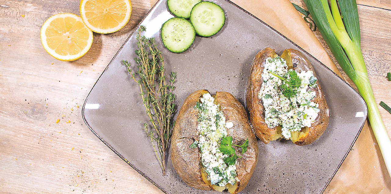 Rezept für Ofenkartoffeln mit Hüttenkäse-Petersilie-Topping