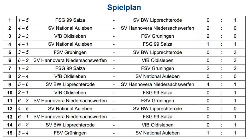6. SV Hannovera Niedersachswerfen 0 Pukte