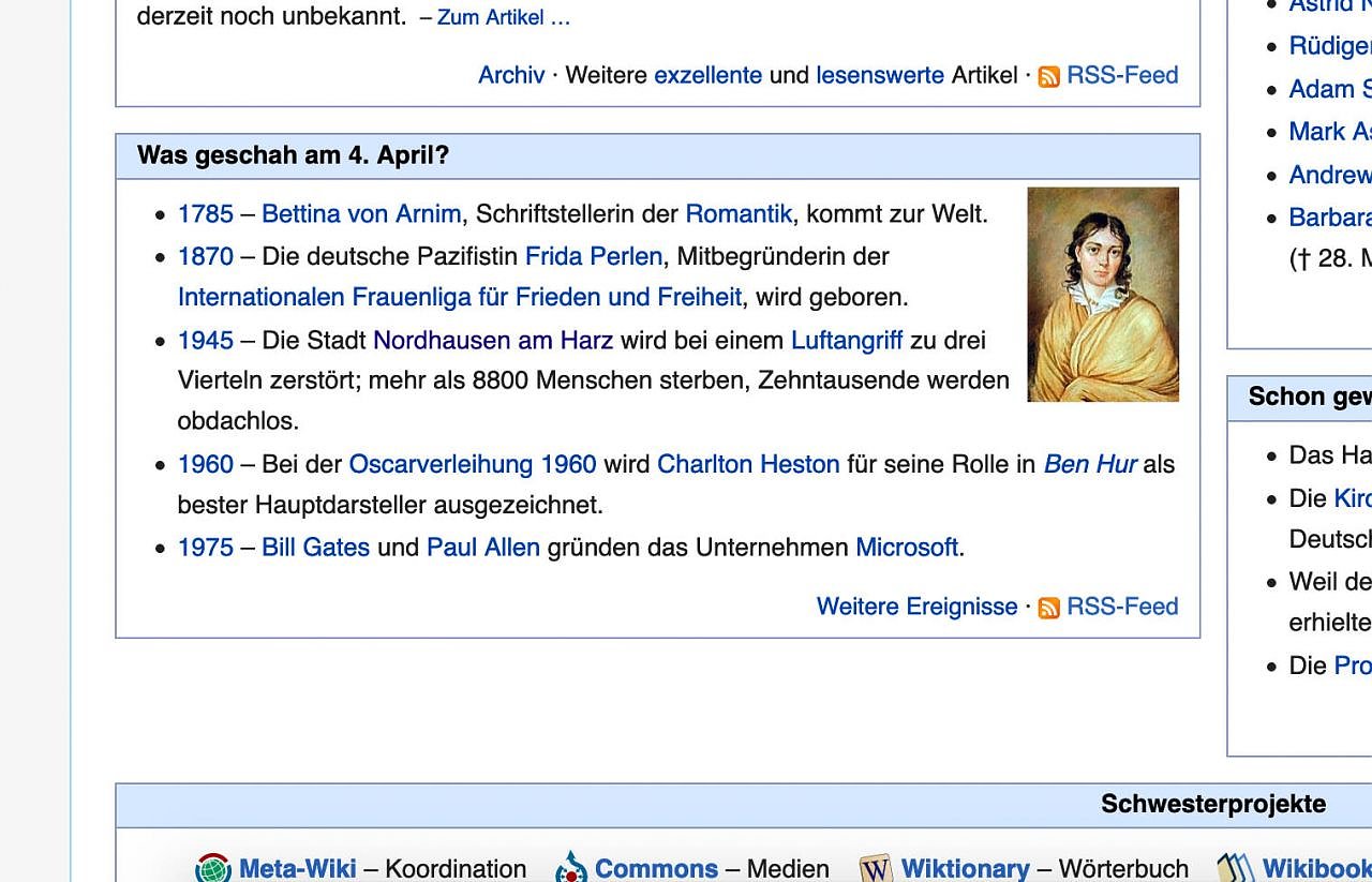 Seit mittlerweile 16 Jahren werden besondere Jahrestage auf der Hauptseite der Wikipedia unter der Rubrik Was geschah am…? gewürdigt. Nun bedachte man zum ersten Mal auch die Stadt Nordhausen infolge der 75. Wiederkehr des Tages der Bombardierung mit einer Nennung.