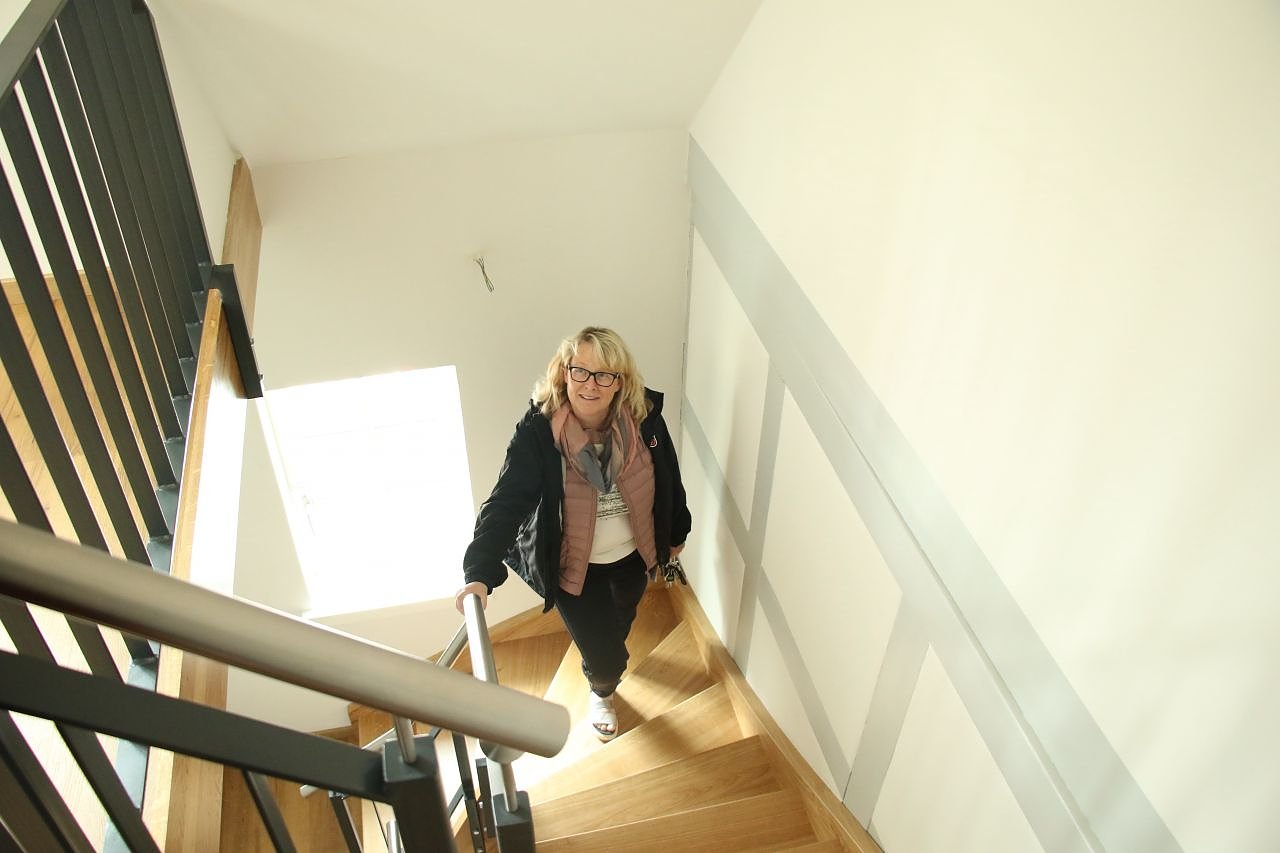 SWG-Chefin Inge Klaan in einer der vertikalen Wohnungen (Foto: Angelo Glashagel)