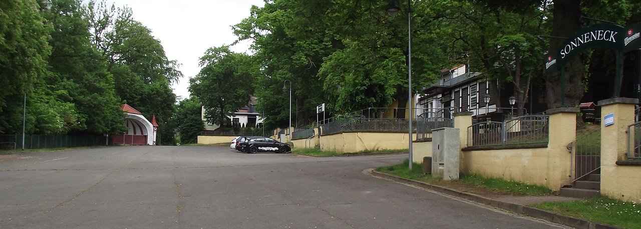 Wir gelangen zum Festplatz. Die Sonne scheint an diesem Wochenende. Die Gaststätte hat geöffnet. Auf der Sonneneck-Terrasse haben es sich Besucher gemütlich gemacht. Der Blick schweift über den Platz. Rundum. Hinüber zu den Tonhallen. Fehlt da nicht etwas? Ach ja: Mir fällt der Nordhäuser Mittelschullehrer Heinrich Heine ein. Er liebte die Heimat, die Stadt und das Gehege. Heine beobachtete das Geschehen an gleicher Stelle, schrieb seine Eindrücke nieder und schilderte die Szene vor über 100 Jahren so: