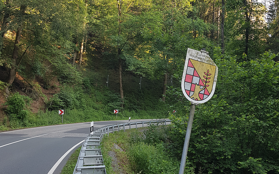 Spätestens bei der fälligen Kreisgebietsreform wird es sich ändern. Dann wird das Altkreisschild getauscht. Also spart es dem Steuerzahler doch Geld, wenn jetzt nicht auch noch ein "Willkommen" auf der sowieso einspurigen mit Überholverbot belegten Strecke gedruckt werden muss. Schließlich hat der Chauffeur an dieser Stelle keine andere Wahl sowohl die Landes- als auch die Kreisgrenze und die Gemeindegrenze und die Ortschaftsgrenze zu passieren. Da müssen sich die vier Körperschaften jetzt nur noch einigen, wer jetzt den Willkommenswunsch mit seinem Wappen floskelhaft sinnschwanger an die Strasse bannt.