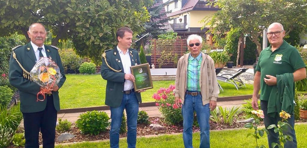 Erst durch die Lockerungen konnte nun die Ehrung am vergangenen Donnerstag vorgenommen werden. Einige Vorstandsmitglieder wurden von Alfred Fuhrmann in seinem zu Hause empfangen. Der Vorsitzende Andreas Lohrengel würdigte den Schützenbruder mit einer Urkunde und ernannte ihn somit als Ehrenmitglied des Osteröder Schützenvereins.