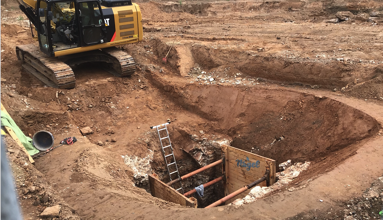 Garke ist bei den Ausgrabungen dabei, macht Panoramaaufnahmen. Wir dachten erst das sei ein Keller aber dann ging es immer tiefer und tiefer und hörte gar nicht mehr auf. Das war absolut irre. Für die Archäologen ist es ein Glücksfund. Nachdem man sich vorsichtig durch anderthalb bis zwei Meter Weltkriegsschutt gebuddelt hatte, konnte man bis dato vor allem Hinterlassenschaften jüngeren Datums entdecken, allen voran natürlich die Blindgänger, die in den letzten Wochen und Monaten für hastige Evakuierungen der Innenstadt sorgten sowie mehrere Bombentrichter. Für den Mann im Bagger, Peter Franke, ist auch solch schwieriges Gelände zwar Routine, dennoch müsse man immer Vorsicht walten lassen. Wir arbeiten uns Schritt für Schritt vor, da muss immer jemand dabei stehen und besonders auf Farbveränderungen im Boden achten. Das wachsame Auge (und die nötige Technik) haben die Mitarbeiter der Firma Tauber Delaborierung. Tauber ist immer mit dabei, ohne die wird in Nordhausen nicht geschachtet, sagt Franke.