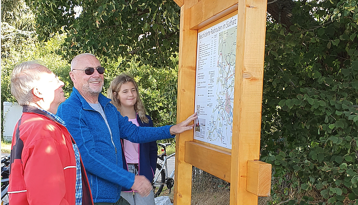 Auf diese Partner konnte man sich auch bei der Realisierung des jüngsten Anliegens verlassen. An der "Alten Leipziger Straße" wurde gestern eine weitere, ausführliche Informations-Tafel angebracht. Zu den Spendern gesellten sich dieses mal auch zwei Personen, die ungenannt bleiben wollten. Wie ADFC-Mitglied Hans Schubert verriet, handelte es sich bei dem Duo nicht um Einwohner oder Unternehmer aus der Region, sondern um zwei Touristen, denen die Arbeit des Vereins so gut gefallen hatte, dass sie sich spontan dazu entschlossen, den ADFC zu unterstützen.