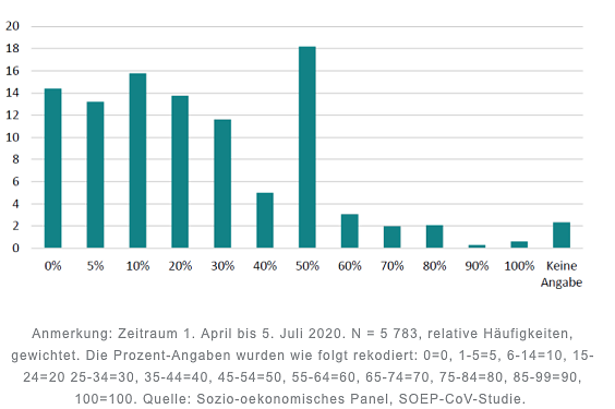 [2] Die SOEP-CoV Studie ist ein Verbundprojekt der Universität Bielefeld und dem SOEP am DIW Berlin, das seit dem 1. April 2020 vom Bundesministerium für Bildung und Forschung (BMBF) im Rahmen des Förderaufrufs zur Erforschung von COVID-19 im Zuge des Ausbruchs von Sars-CoV-2 gefördert wird. Im Rahmen des Projekts wurden SOEP-Befragte von 1. April bis 5. Juli 2020 – zusätzlich zu der regelmäßigen jährlichen Befragung – zu ihrer beruflichen und familiären Situation, zu ihren Sorgen und ihrer Gesundheit, sowie zu Erwartungen und Meinungen befragt. Nähere Information zu SOEP-CoV finden sich unter www.soep-cov.de sowie im SOEP-CoV-Methodenpapier von Simon Kühne et al. (2020): The Need for Household Panel Surveys in Times of Crisis: The Case of SOEP-CoV. Survey Research Methods, 14(2), 195–203 (online verfügbar; abgerufen am 29. Juli 2020. Dies gilt auch für alle weiteren Online-Quellen, sofern nicht anders vermerkt).